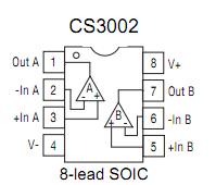 The CS3002-ISZ is a dual amplifier are designed for precision amplification of low- level signals and are ideally suited to applications that require very high closed-loop gains. The amplifier achieves excellent offset stability, super-high open-loop gain, and low noise over time and temperature. The CS3002-ISZ also exhibits excellent CMRR and PSRR. The common mode input range includes the negative supply rail. The amplifier operates with any total supply voltage from 2.7 V to 6.7 V (±1.35 V to ±3.35 V). The applications of the CS3002-ISZ include Thermocouple/ Thermopile Amplifiers, Load Cell and Bridge Transducer Amplifiers, Precision Instrumentation and Battery-powered Systems.